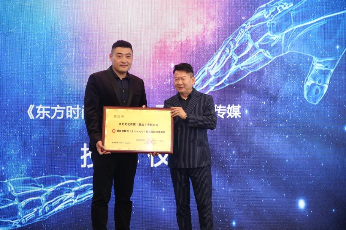 同时,灵拓国际传媒董事长林磊先生与重庆电视台《东方时尚行》栏目总导演东方李虹先生、电影《重庆崽》总导演余侠先生签订了战略合作协议并举行了授牌仪式